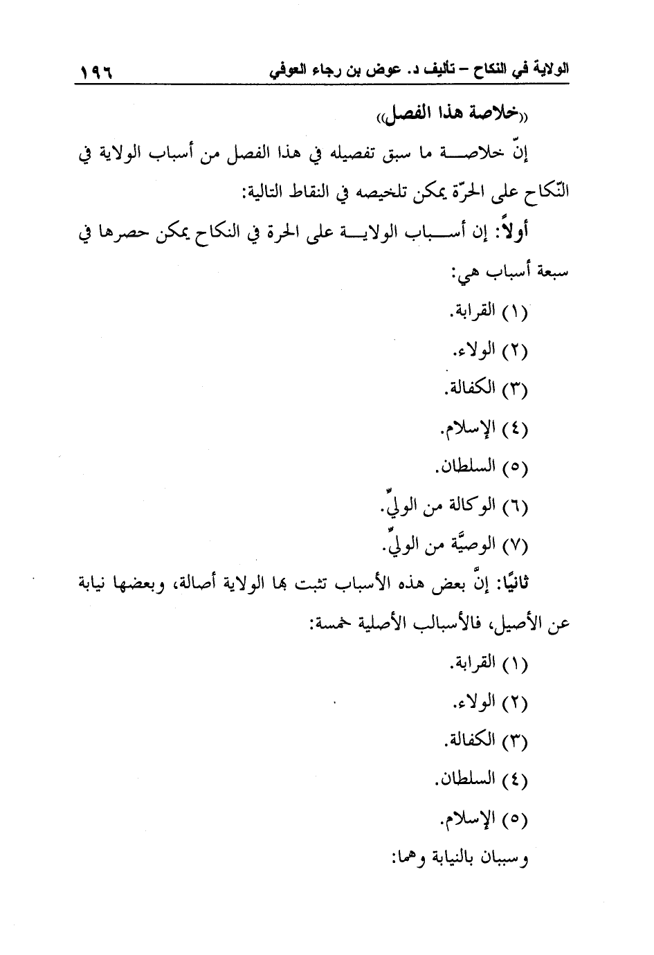 أولاً: إن أسباب الولاية على الحرة في النكاح يمكن حصرها في سبعة أسباب هي: