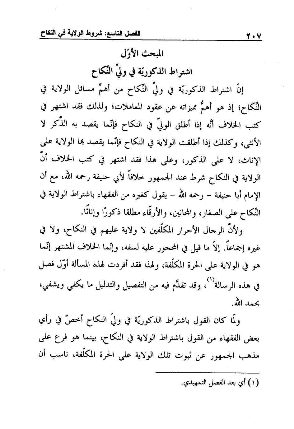 المبحث الأوّل: اشتراط الذكوريّة في وليِّ النِّكاح