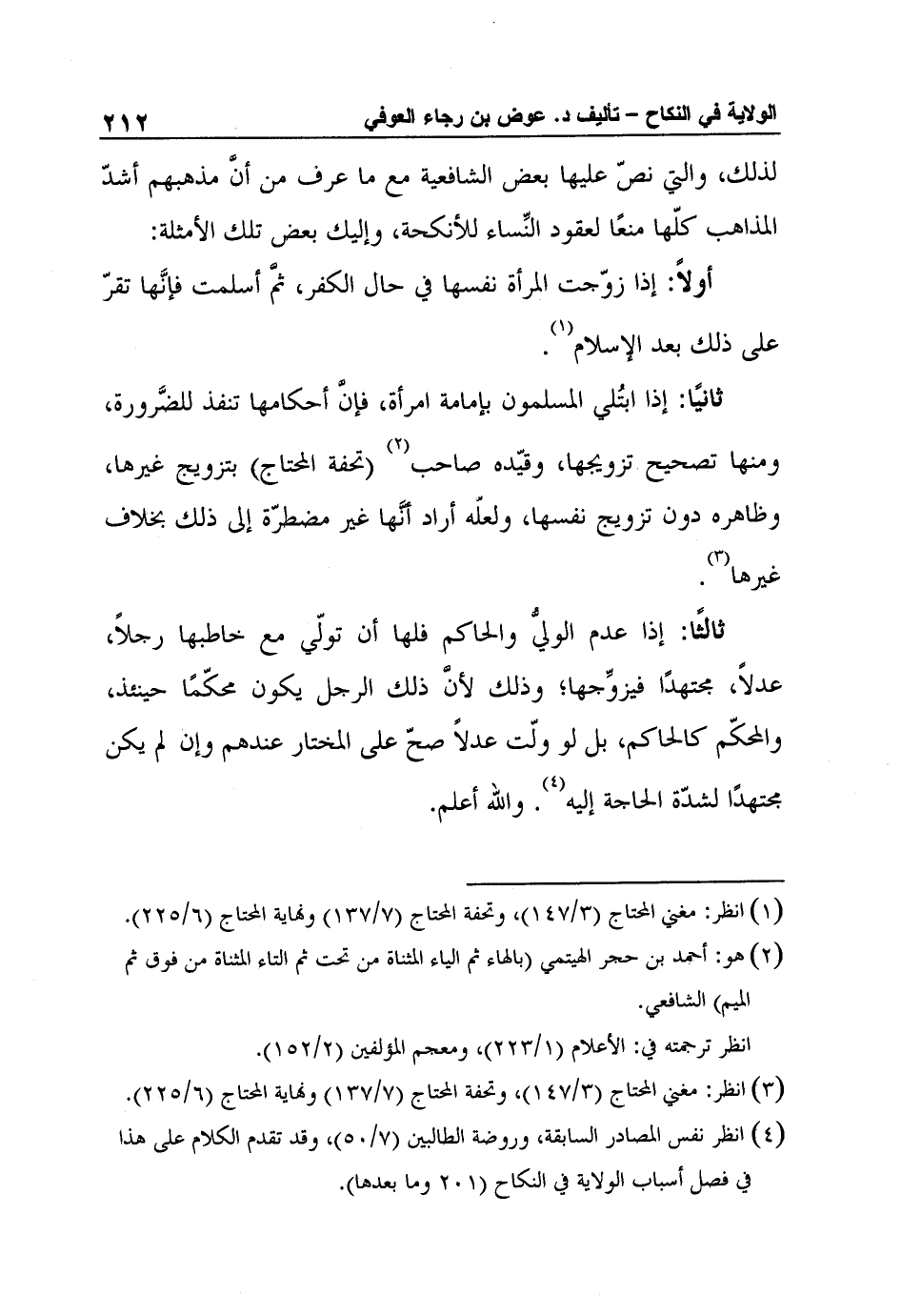 4 انظر نفس المصادر السابقة، وروضة الطالبين (7/50) ، وقد تقدم الكلام على هذا في فصل أسباب الولاية في النكاح (201 وما بعدها) .