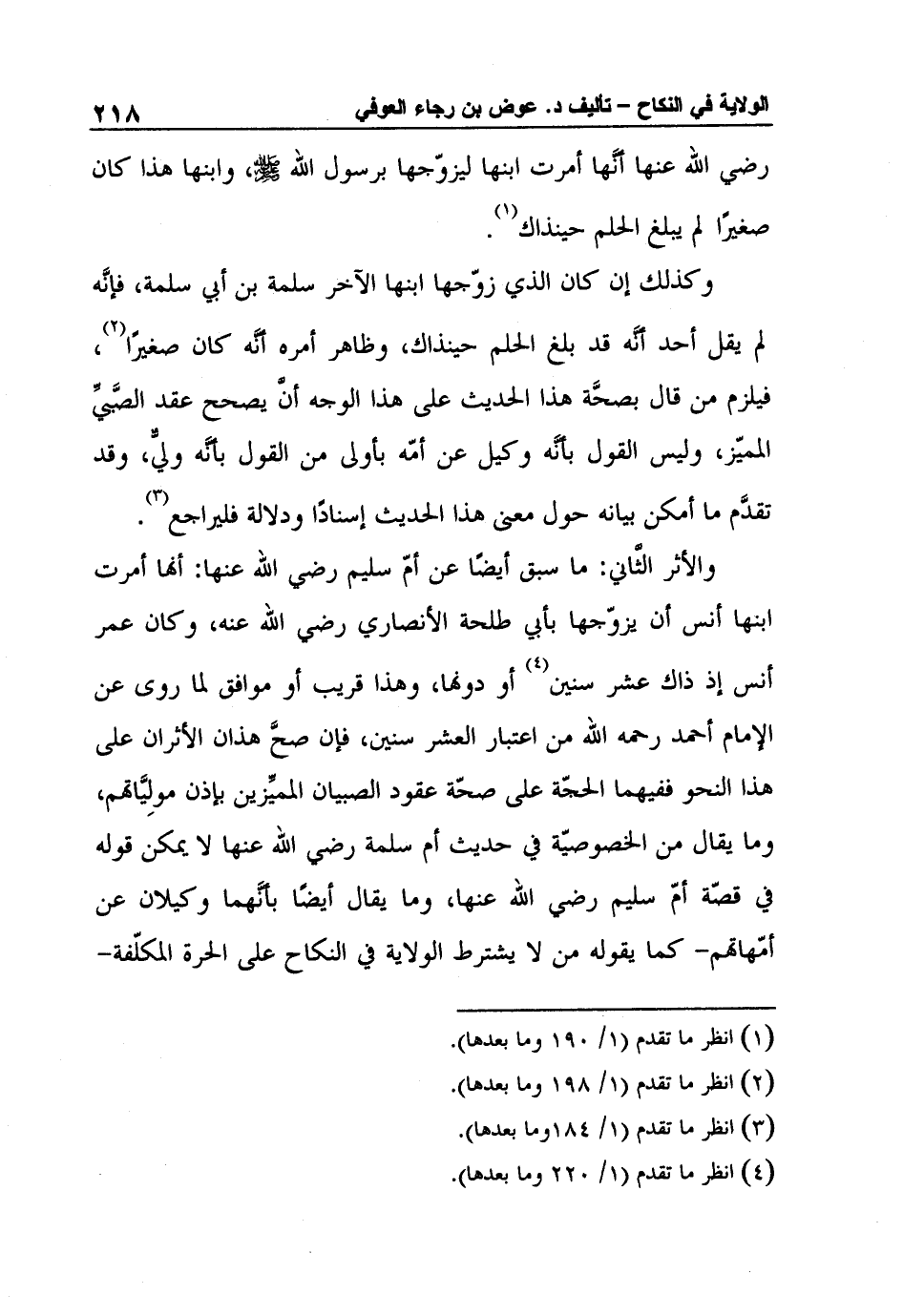 وكذلك إن كان الذي زوّجها ابنها الآخر سلمة بن أبي سلمة، فإنَّه لم يقل أحد أنَّه قد بلغ الحلم حينذاك، وظاهر أمره أنَّه كان صغيرًا2، فيلزم من قال بصحَّة هذا الحديث على هذا الوجه أنَّ يصحح عقد الصَّبيِّ المميّز، وليس القول بأنَّه وكيل عن أمّه بأولى من القول بأنَّه وليٌّ، وقد تقدَّم ما أمكن بيانه حول معنى هذا الحديث إسنادًا ودلالة فليراجع3.