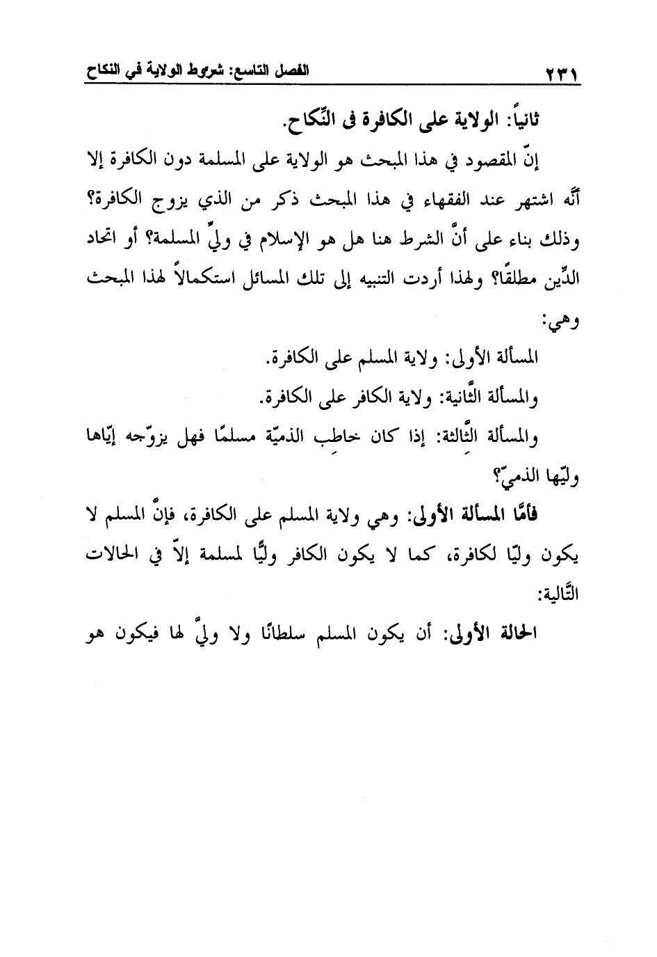 المسألة الأولى: ولاية المسلم على الكافرة.