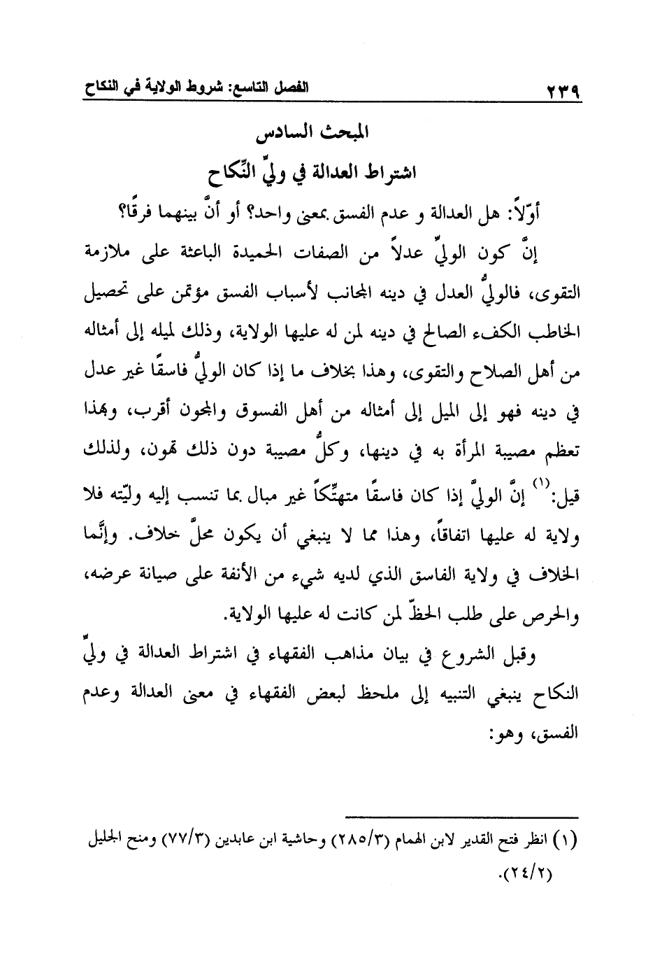 المبحث السادس: اشتراط العدالة في وليِّ النِّكاح
