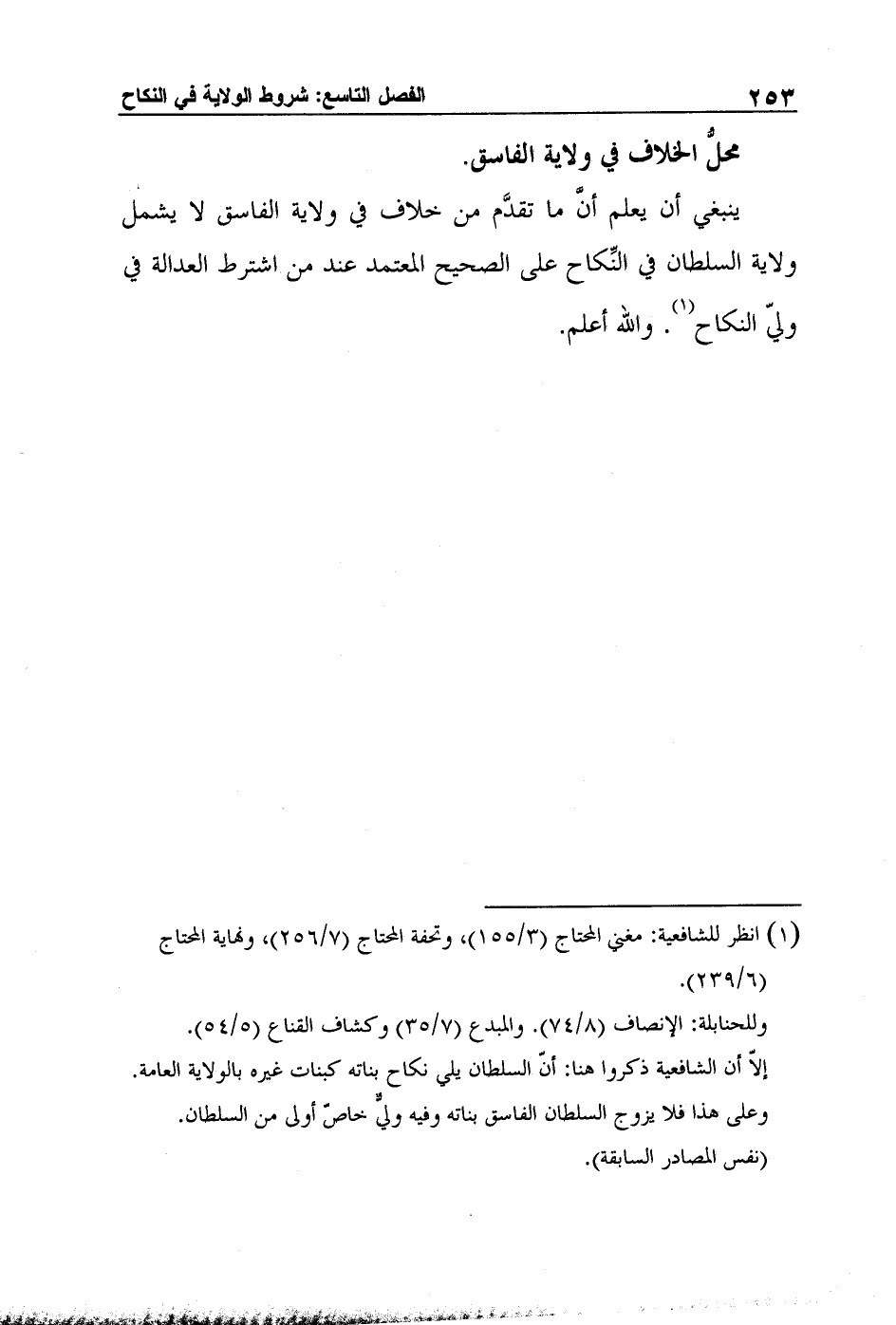 ينبغي أن يعلم أنَّ ما تقدَّم من خلاف في ولاية الفاسق لا يشمل ولاية السلطان في النِّكاح على الصحيح المعتمد عند من اشترط العدالة في وليّ النكاح1. والله أعلم.