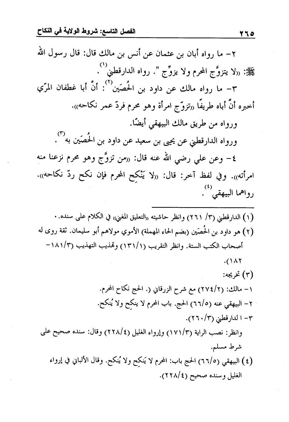 4 البيهقي (5/66) الحج باب: المحرم لا يَنكِح ولا يُنكح. وقال الألباني في إرواء الغليل وسنده صحيح (4/228) .