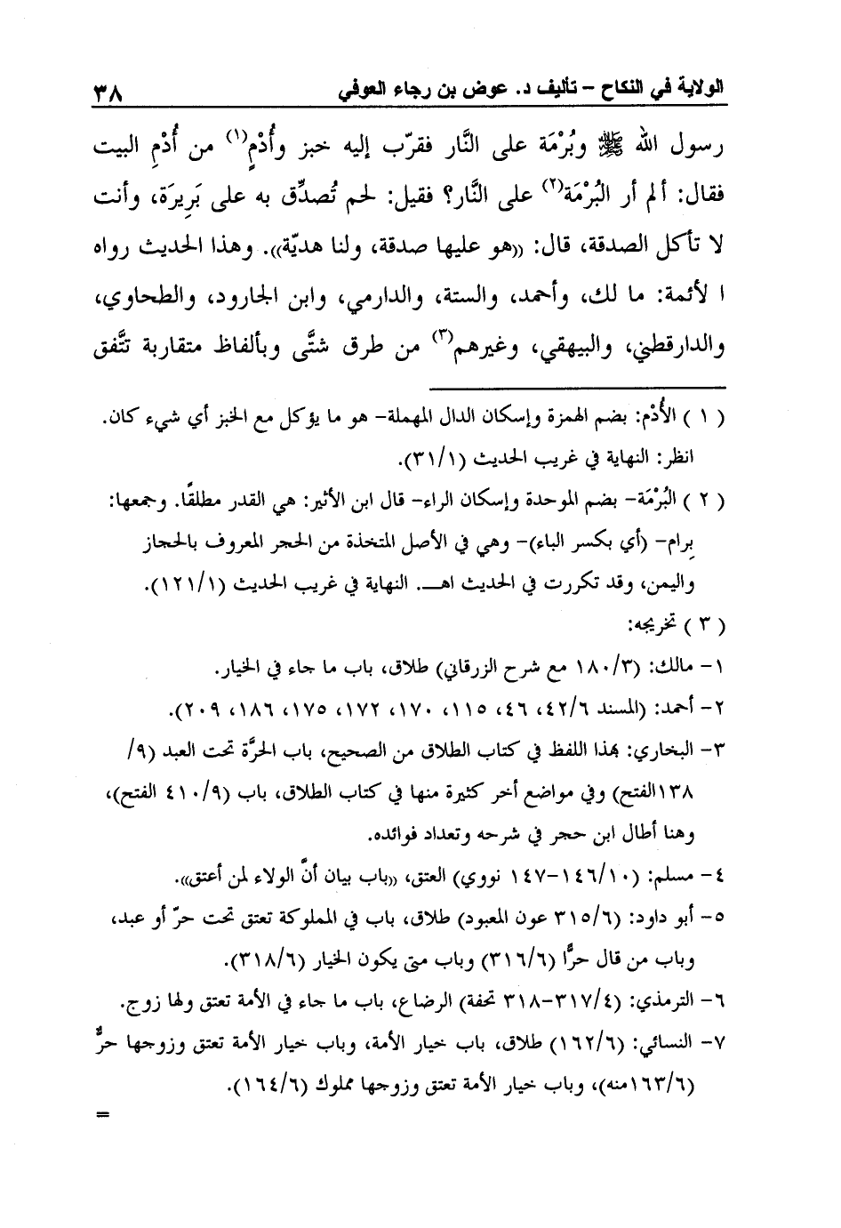 5- أبو داود: (6/315 عون المعبود) طلاق، باب في المملوكة تعتق تحت حرّ أو عبد، وباب من قال حرًّا (6/316) وباب متى يكون الخيار (6/318) .