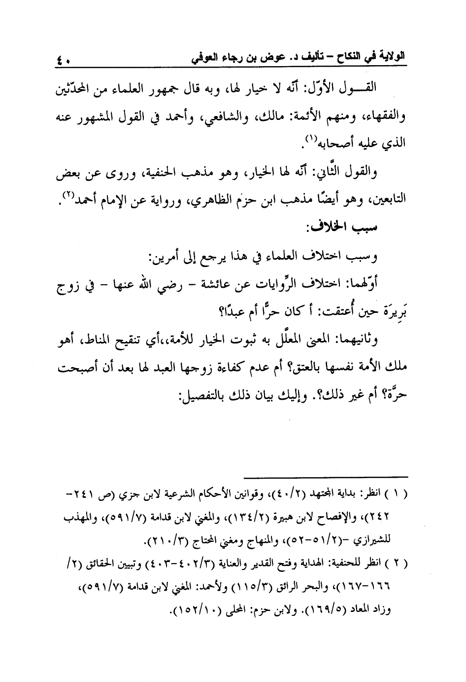 1 انظر: بداية المجتهد (2/40) ، وقوانين الأحكام الشرعية لابن جزي (ص 241-242) ، والإفصاح لابن هبيرة (2/134) ، والمغني لابن قدامة (7/591) ، والمهذب للشيرازي - (2/51-52) ، والمنهاج ومغني المحتاج (3/210) .