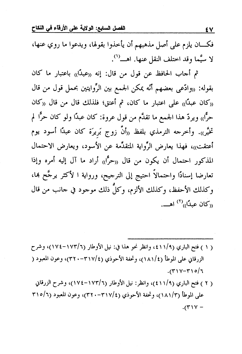 1 فتح الباري (9/411، وانظر نحو هذا في: نيل الأوطار (6/173-174) ، وشرح الزرقاني على الموطأ (4/181) ، وتحفة الأحوذي (4/317-320) ، وعون المعبود (6/315-317) .