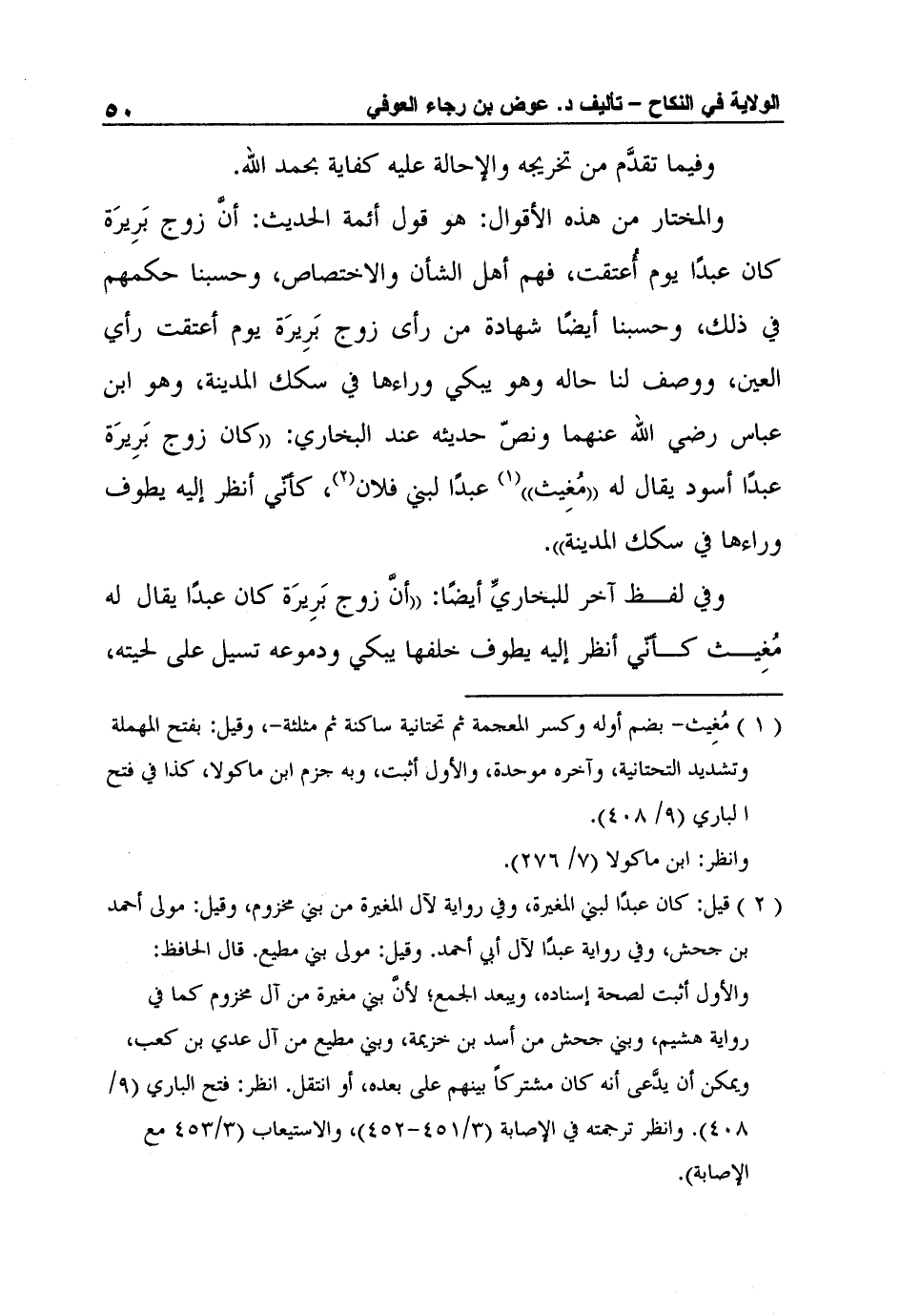 1 مُغِيث- بضم أوله وكسر المعجمة ثم تحتانية ساكنة ثم مثلثة-، وقيل: بفتح المهملة وتشديد التحتانية، وآخره موحدة، والأول أثبت، وبه جزم ابن ماكولا، كذا في فتح الباري (9/408) .