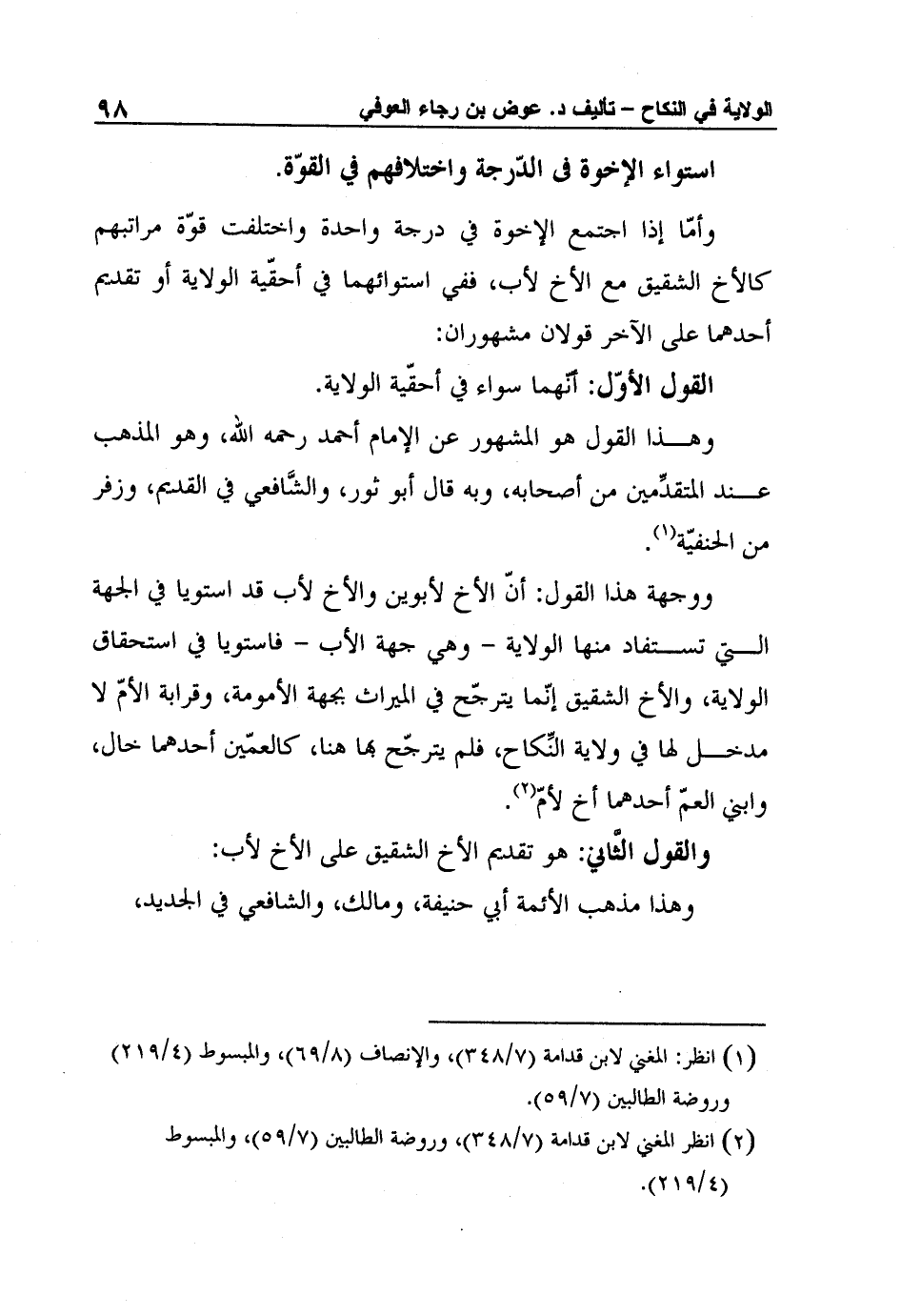 2 انظر المغني لابن قدامة (7/348) ، وروضة الطالبين (7/59) ، والمبسوط