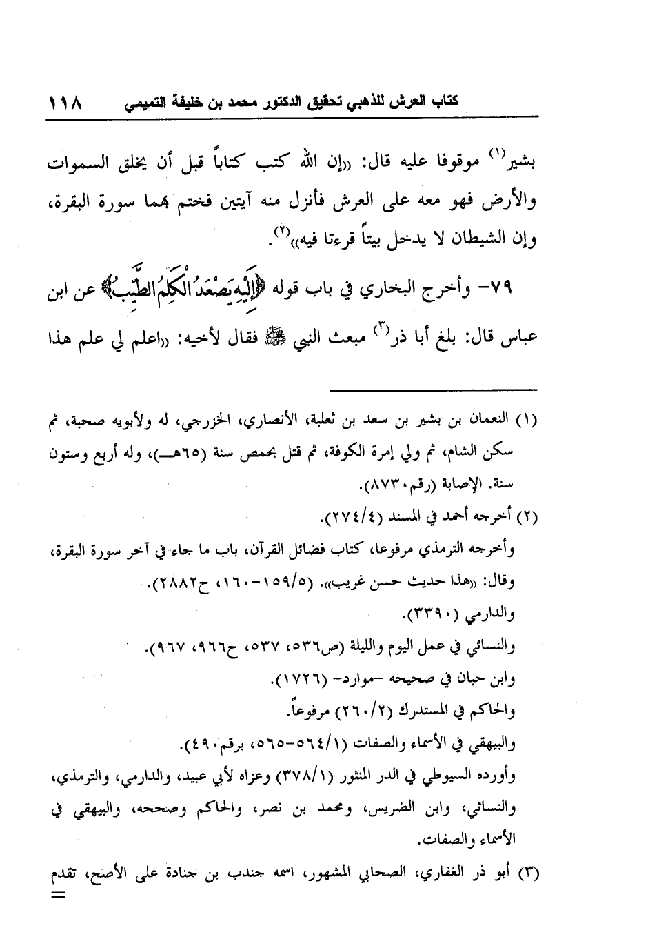 79- وأخرج البخاري في باب قوله {إِلَيْهِ يَصْعَدُ الْكَلِمُ الطَّيِّبُ} عن ابن عباس قال: بلغ أبا ذر3 مبعث النبي صلى الله عليه وسلم فقال لأخيه: "اعلم لي علم هذا