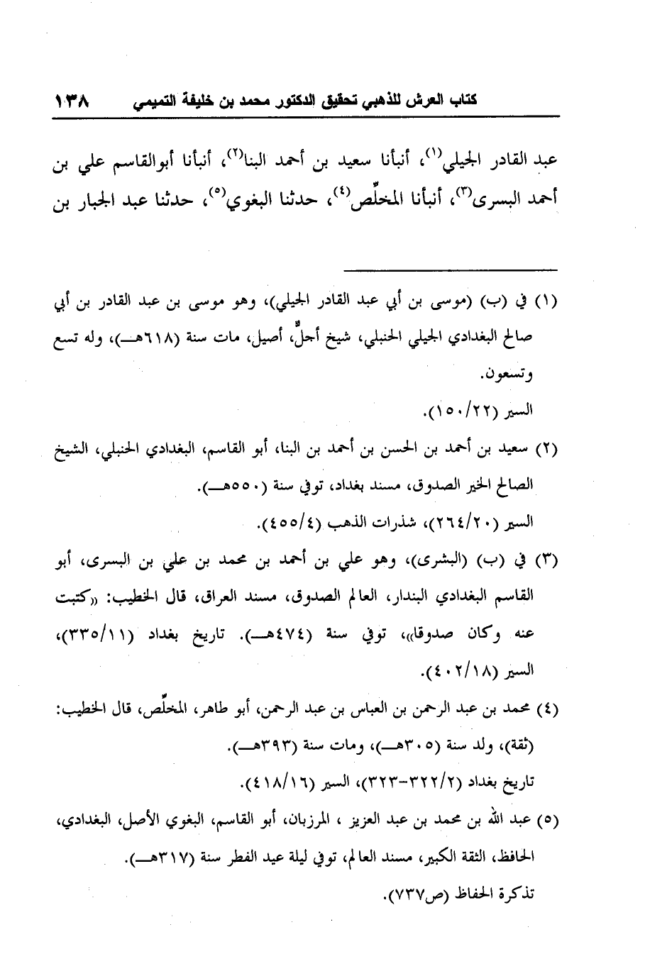 4 محمد بن عبد الرحمن بن العباس بن عبد الرحمن، أبو طاهر، المخلِّص، قال الخطيب: (ثقة) ، ولد سنة (305هـ) ، ومات سنة (393هـ) . تاريخ بغداد (2/322-323) ، السير (16/418) .