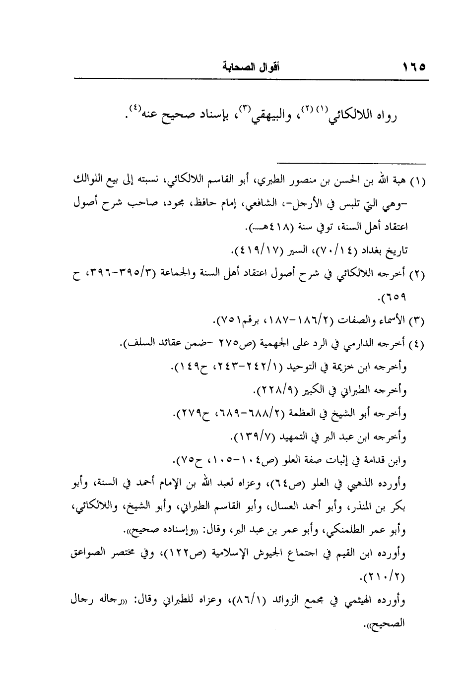 2 أخرجه اللالكائي في شرح أصول اعتقاد أهل السنة والجماعة (3/395-396، ح659) .