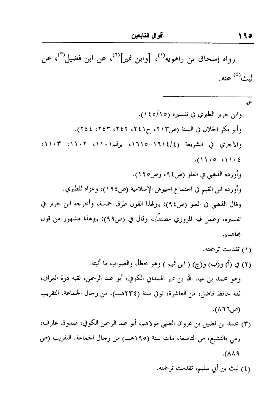 رواه إسحاق بن راهويه1، [وابن نمير] 2، عن ابن فضيل3، عن ليث4 عنه.