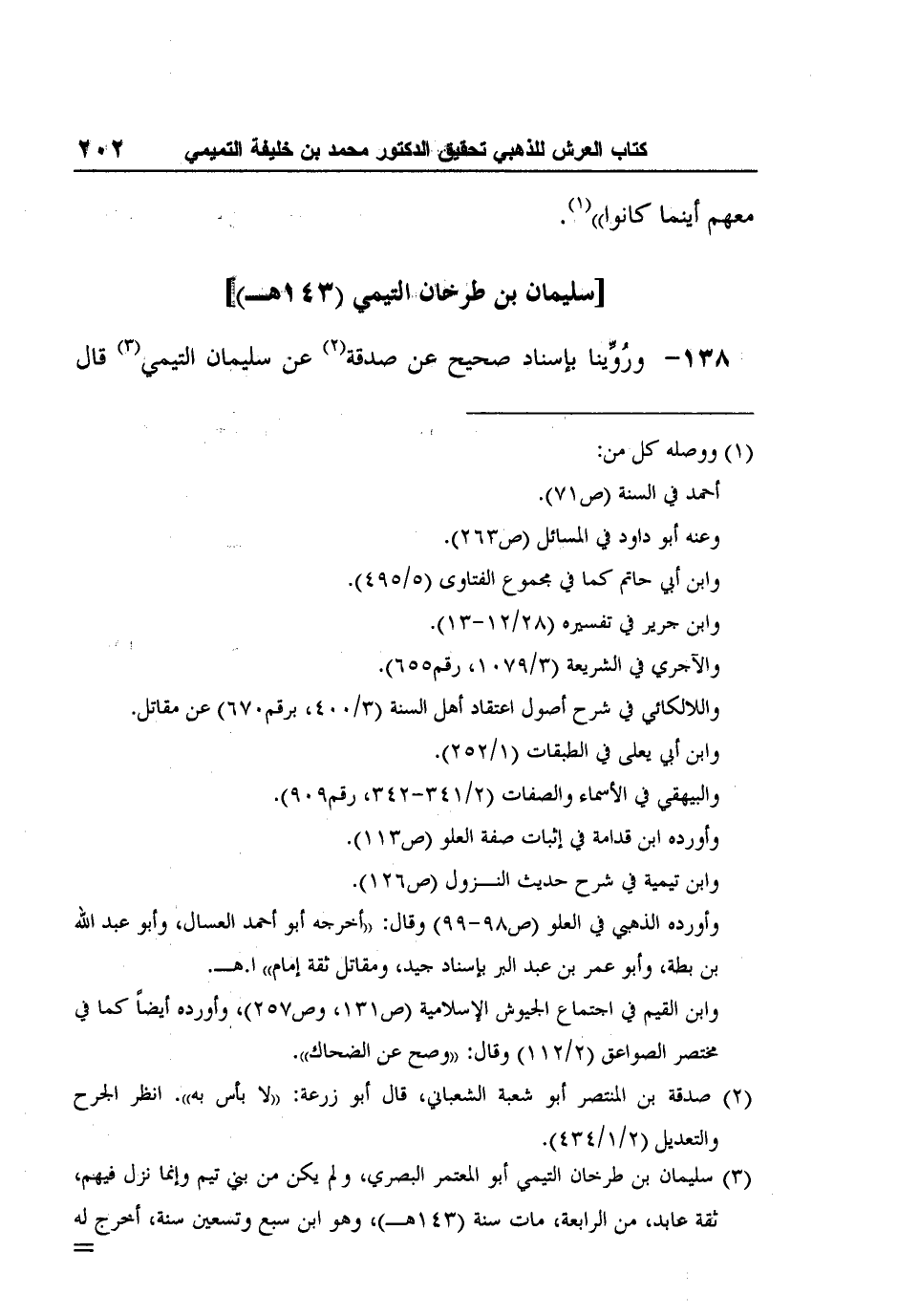 138- ورُوِّينا بإسناد صحيح عن صدقة2 عن سليمان التيمي3 قال
