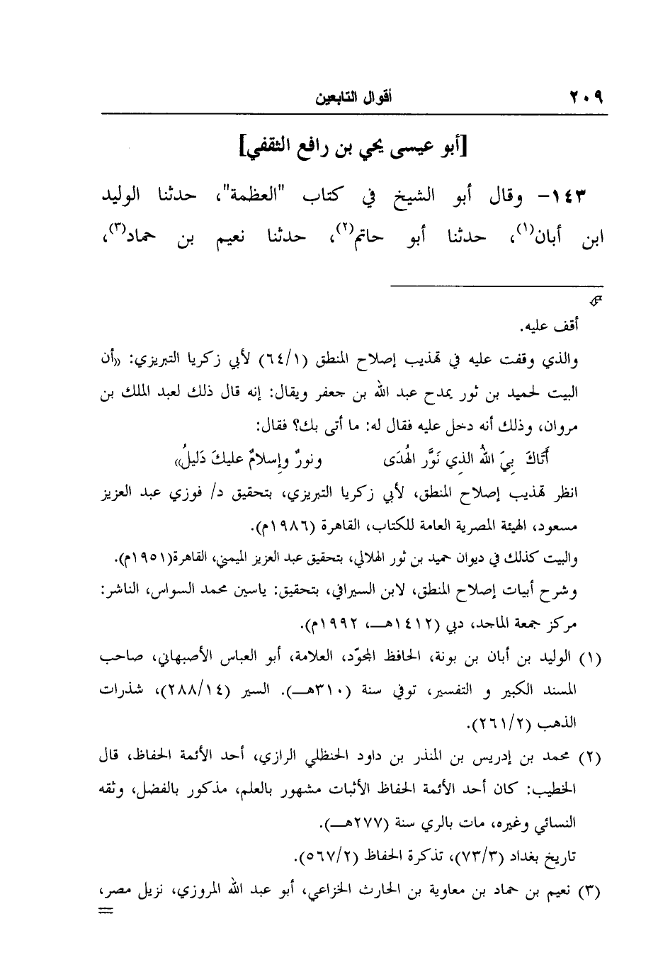 انظر تهذيب إصلاح المنطق، لأبي زكريا التبريزي، بتحقيق د/ فوزي عبد العزيز مسعود، الهيئة المصرية العامة للكتاب، القاهرة (1986م) .