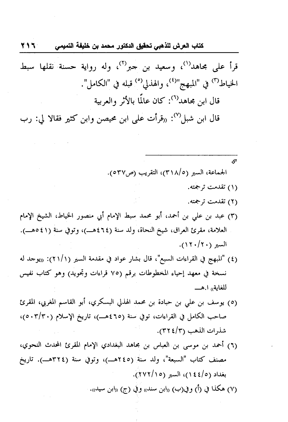 6 أحمد بن موسى بن العباس بن مجاهد البغدادي الإمام المقرئ المحدث النحوي، مصنف كتاب "السبعة"، ولد سنة (245هـ) ، وتوفي سنة (324هـ) . تاريخ بغداد (5/144) ، السير (15/272) .