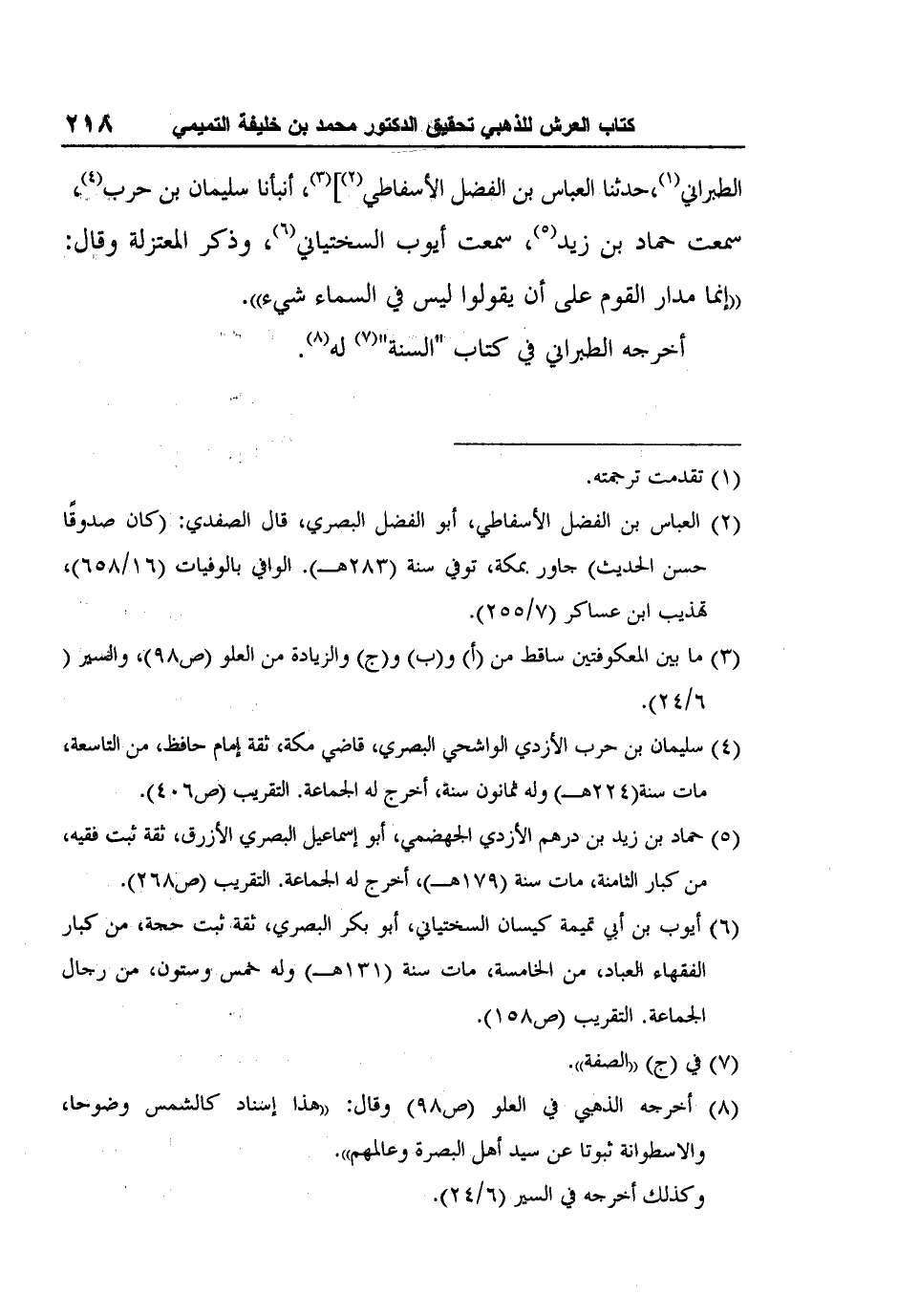 8 أخرجه الذهبي في العلو (ص98) وقال: "هذا إسناد كالشمس وضوحا، والاسطوانة ثبوتا عن سيد أهل البصرة وعالمهم".وكذلك أخرجه في السير (6/24) .