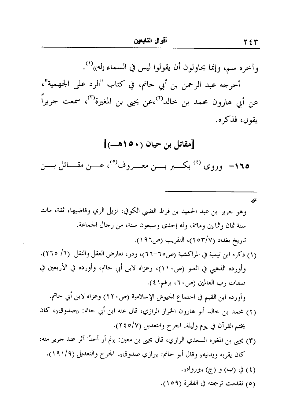 أخرجه عبد الرحمن بن أبي حاتم، في كتاب "الرد على الجهمية"، عن أبي هارون محمد بن خالد2،عن يحيى بن المغيرة3، سمعت جريراً يقول، فذكره.
