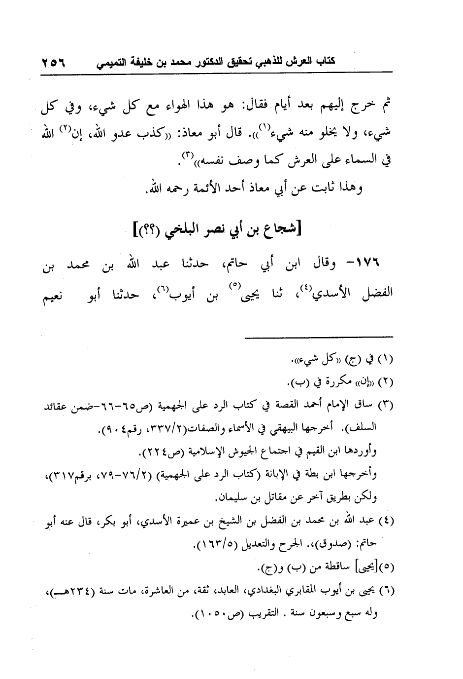 176- وقال ابن أبي حاتم، حدثنا عبد الله بن محمد بن الفضل الأسدي4، ثنا يحيى5 بن أيوب6، حدثنا أبو نعيم