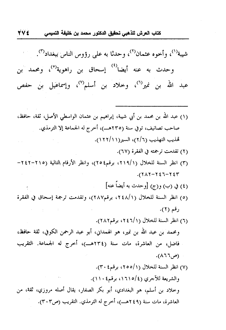 3 انظر السنة للخلال (1/219، برقم254) ، وانظر الأرقام التالية (215-242-243-246-282) .