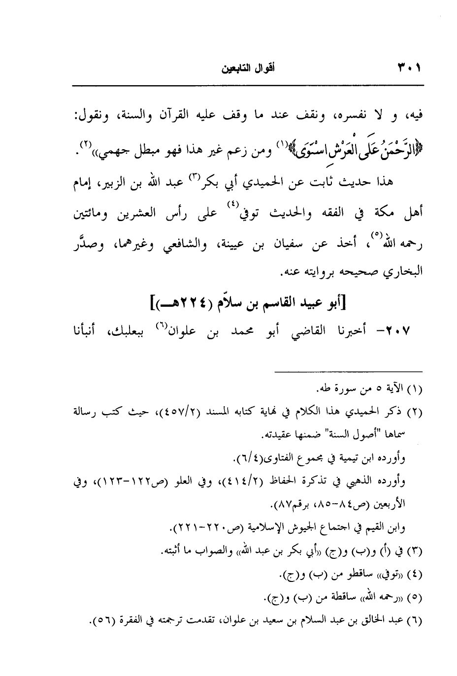 2 ذكر الحميدي هذا الكلام في نهاية كتابه المسند (2/457) ، حيث كتب رسالة سماها "أصول السنة" ضمنها عقيدته.