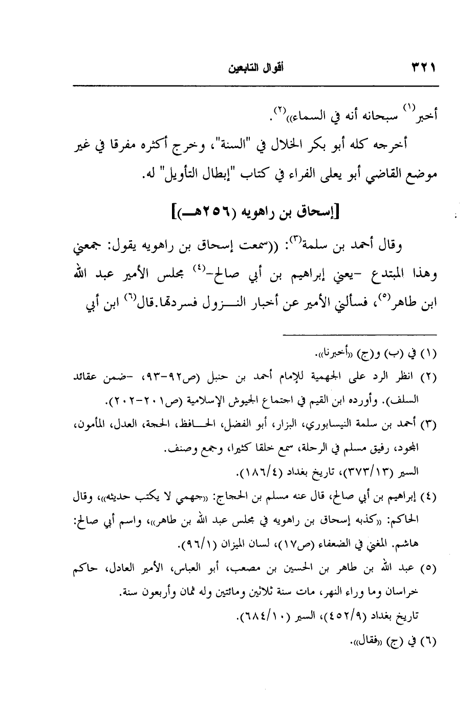 5 عبد الله بن طاهر بن الحسين بن مصعب، أبو العباس، الأمير العادل، حاكم خراسان وما وراء النهر، مات سنة ثلاثين ومائتين وله ثمان وأربعون سنة. تاريخ بغداد (9/452) ، السير (10/684) .