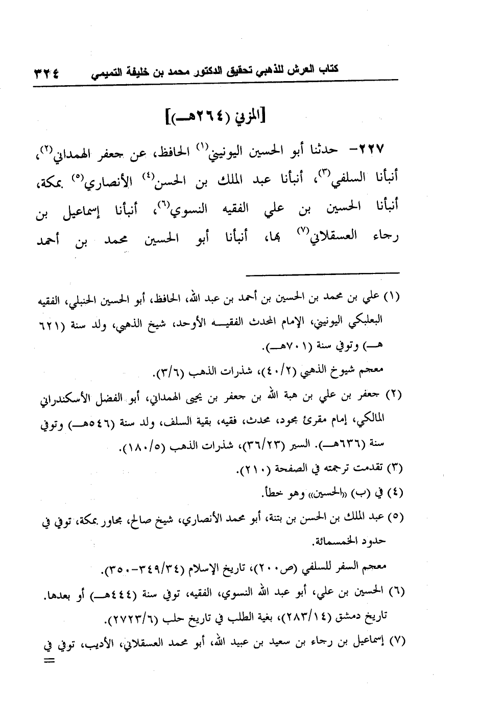 227- حدثنا أبو الحسين اليونيني1 الحافظ، عن جعفر الهمداني2، أنبأنا السلفي3، أنبأنا عبد الملك بن الحسن4 الأنصاري5 بمكة، أنبأنا الحسين بن علي الفقيه النسوي6، أنبأنا إسماعيل بن رجاء العسقلاني7 بها، أنبأنا أبو الحسين محمد بن أحمد