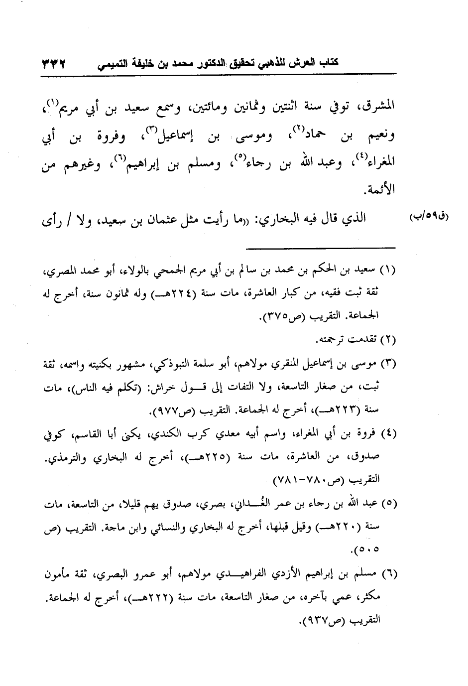 الذي قال فيه البخاري: "ما رأيت مثل عثمان بن سعيد، ولا (ق59/ب) رأى