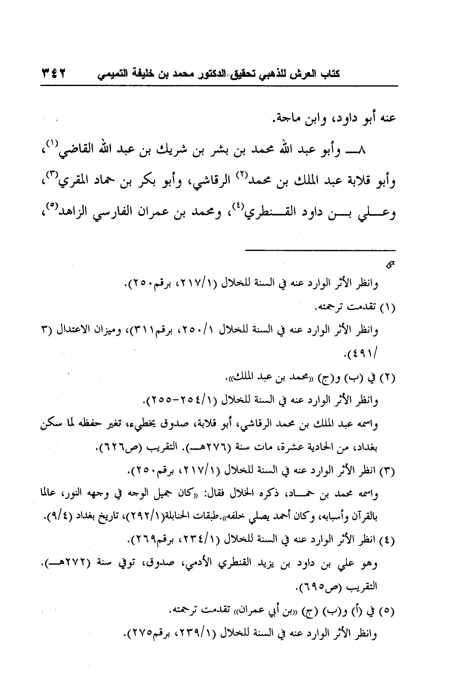 4 انظر الأثر الوارد عنه في السنة للخلال (1/234، برقم269) . وهو علي بن داود بن يزيد القنطري الأدمي، صدوق، توفي سنة (272هـ) . التقريب (ص695) .