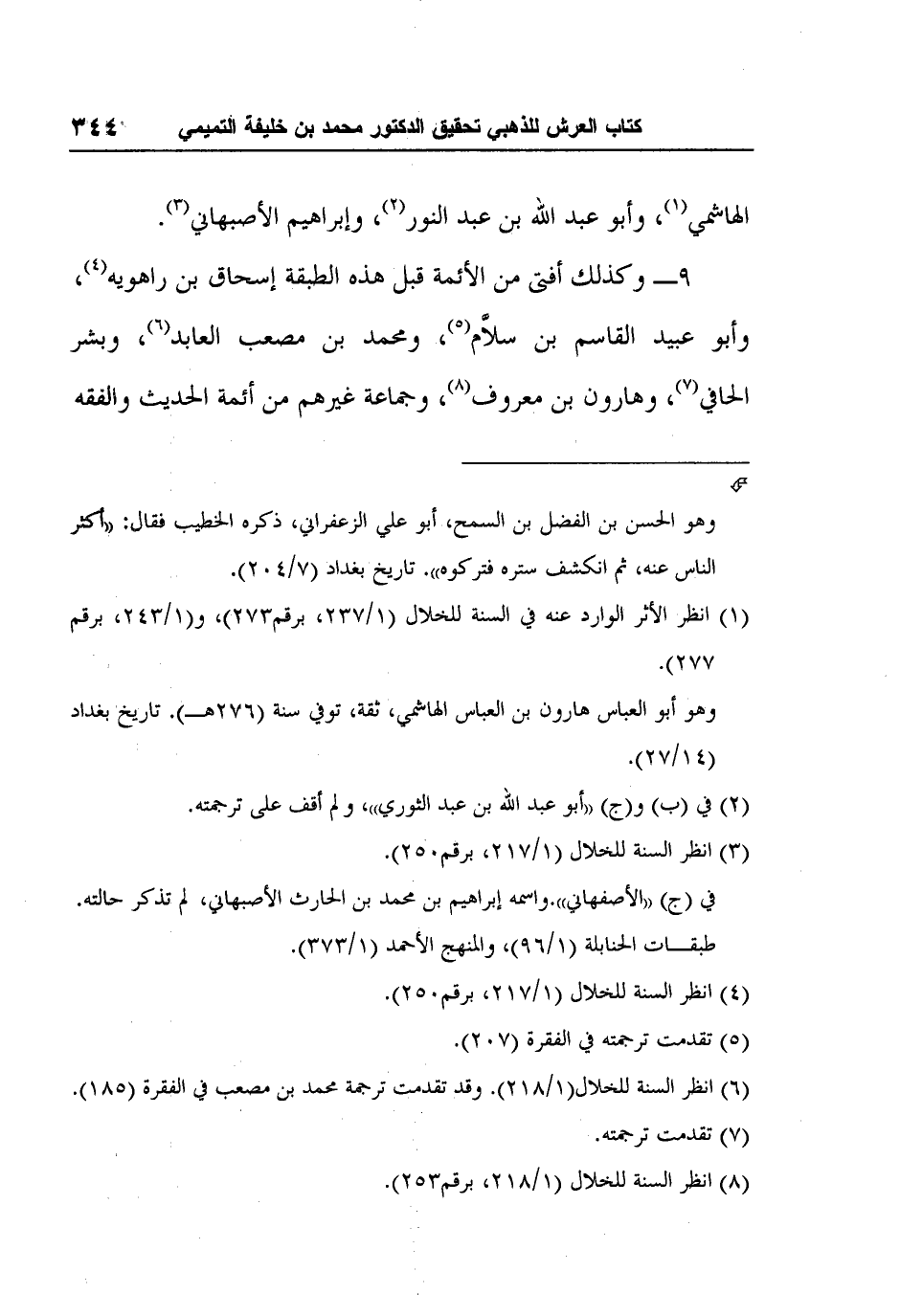 3 انظر السنة للخلال (1/217، برقم250) .في (ج) "الأصفهاني".واسمه إبراهيم بن محمد بن الحارث الأصبهاني، لم تذكر حالته. طبقات الحنابلة (1/96) ، والمنهج الأحمد (1/373) .