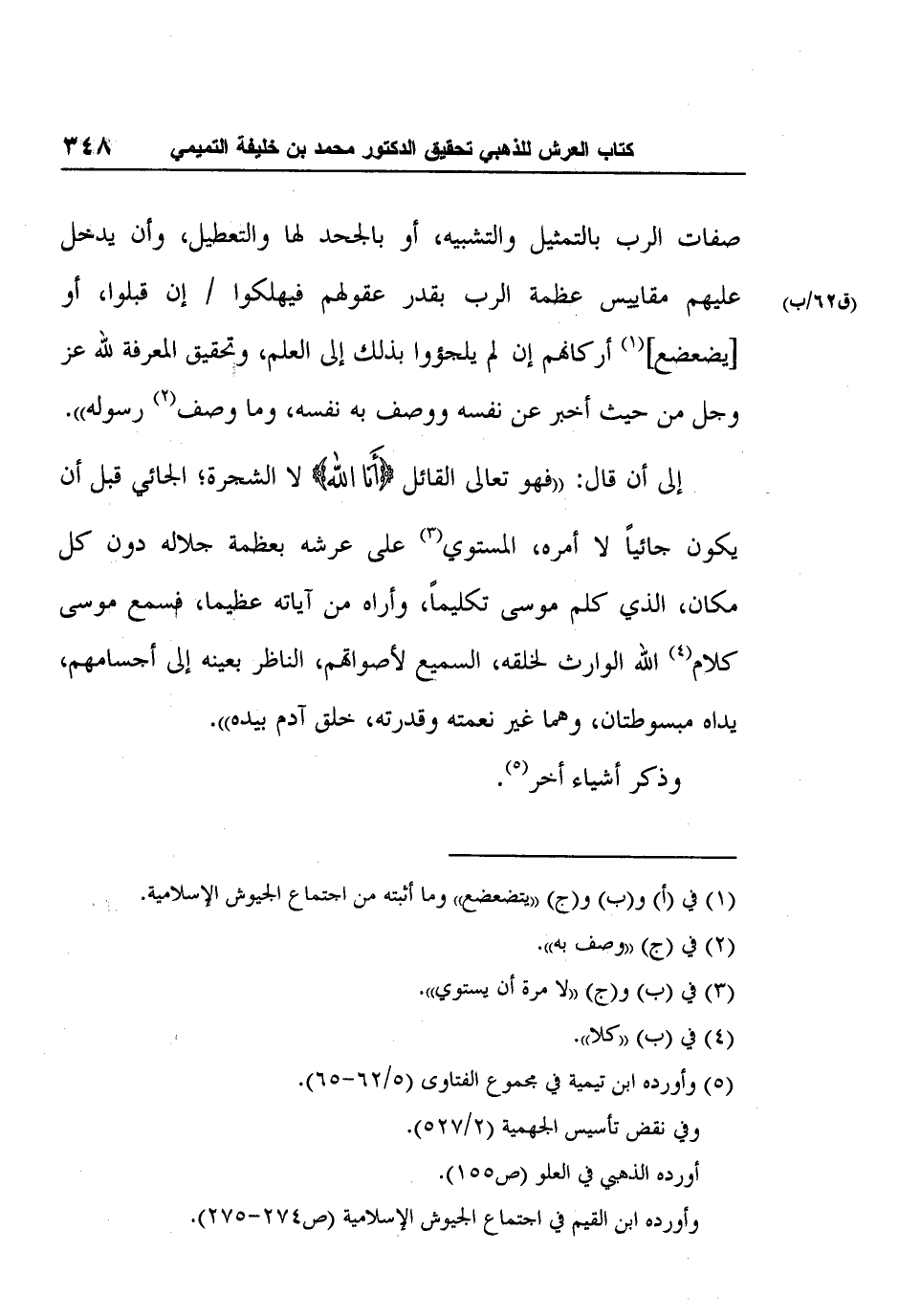 5 وأورده ابن تيمية في مجموع الفتاوى (5/62-65) . وفي نقض تأسيس الجهمية (2/527) . أورده الذهبي في العلو (ص155) . وأورده ابن القيم في اجتماع الجيوش الإسلامية (ص274-275) .