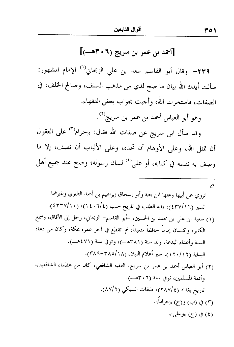 239- وقال أبو القاسم سعد بن علي الزنجاني1 الإمام المشهور: سألت أيدك الله بيان ما صح لدي من مذهب السلف، وصالح الخلف، في الصفات، فاستخرت الله، وأجبت بجواب بعض الفقهاء.