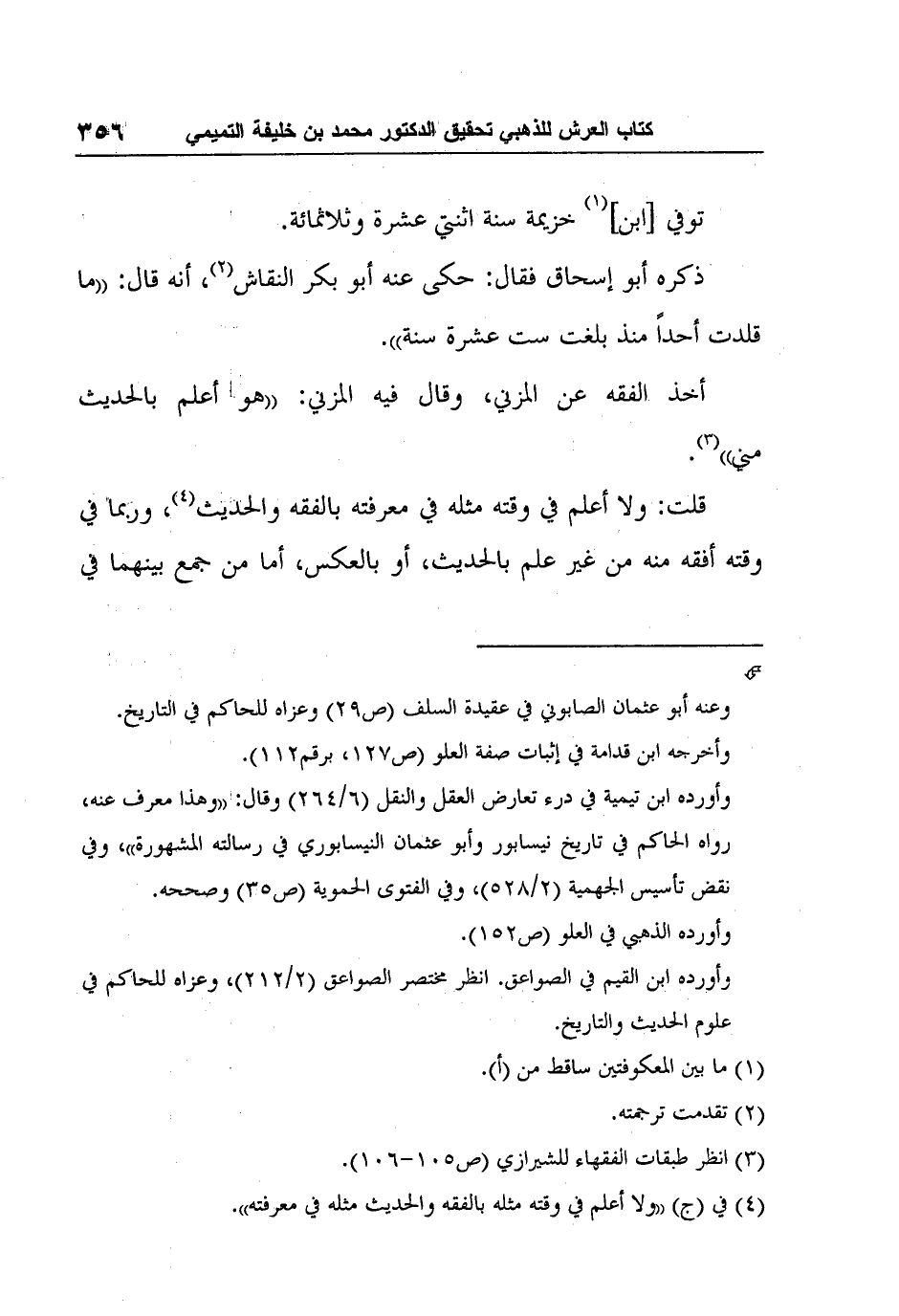 قلت: ولا أعلم في وقته مثله في معرفته بالفقه والحديث4، وربما في وقته أفقه منه من غير علم بالحديث، أو بالعكس، أما من جمع بينهما في