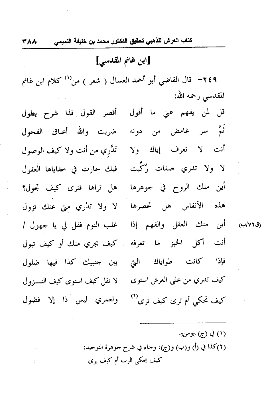 246- قال القاضي أبو أحمد العسال (شعر) من1 كلام ابن غانم المقدسي رحمه الله: