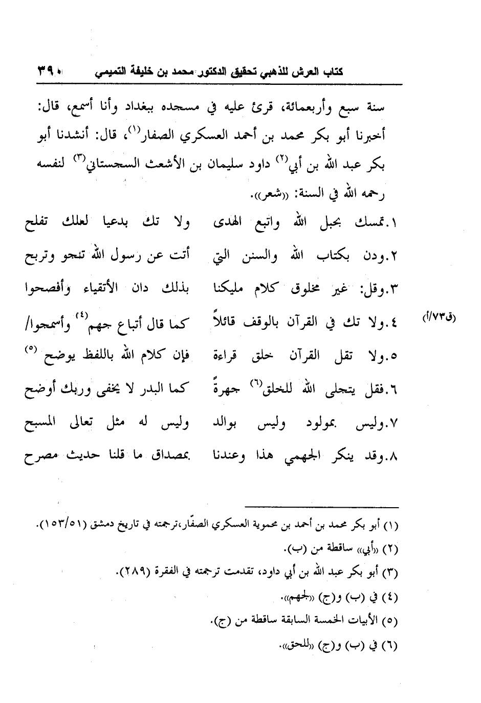 4. ولا تك في القرآن بالوقف قائلاً ... كما قال أتباع جهم4 وأسمجوا (ق73/أ)