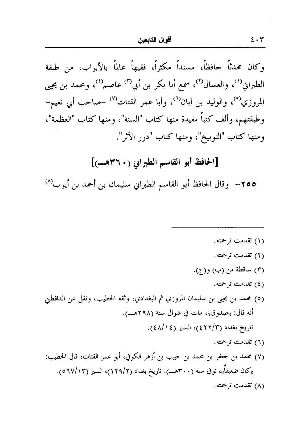 255- وقال الحافظ أبو القاسم الطبراني سليمان بن أحمد بن أيوب8