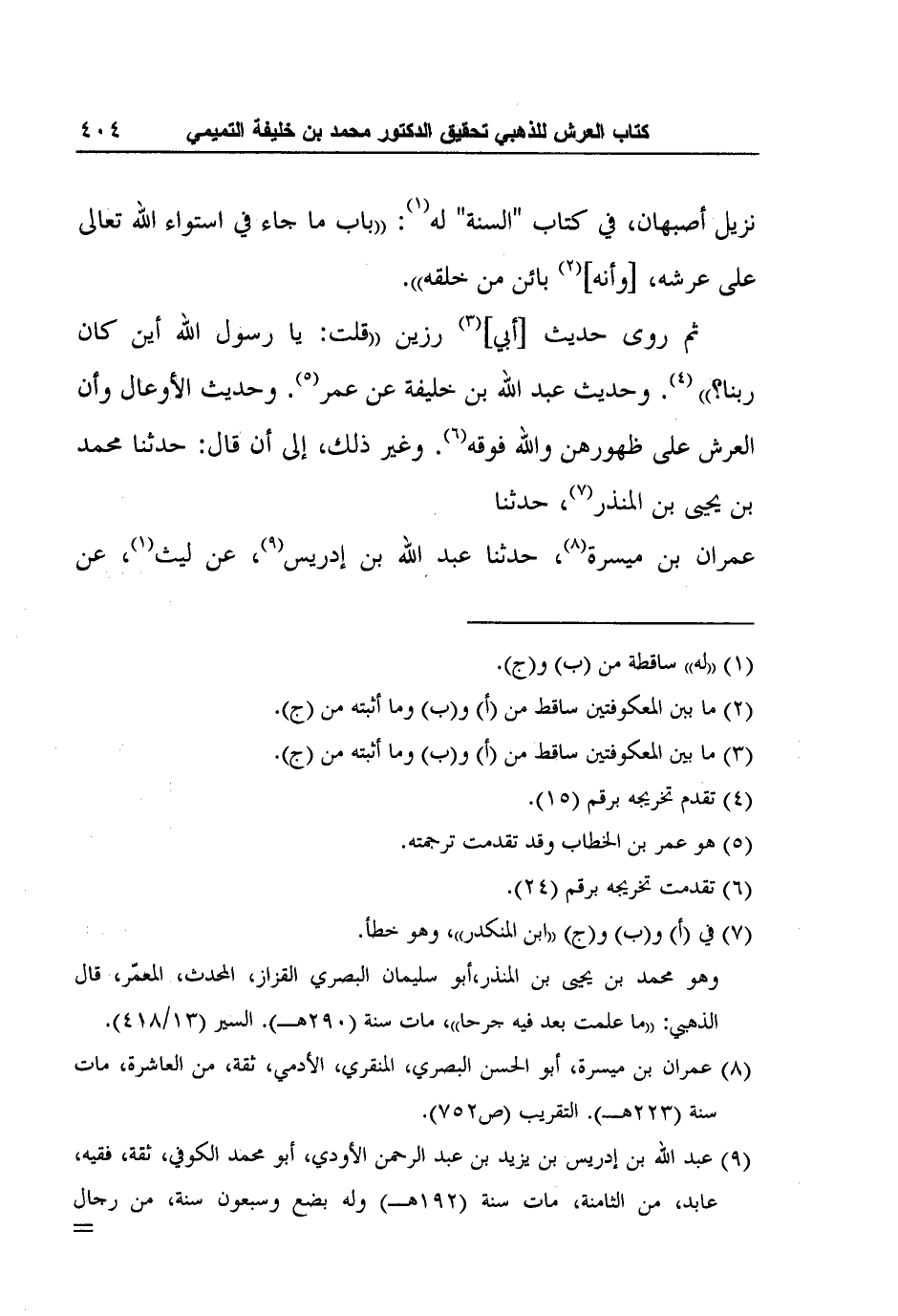 8 عمران بن ميسرة، أبو الحسن البصري، المنقري، الأدمي، ثقة، من العاشرة، مات سنة (223هـ) . التقريب (ص752) .