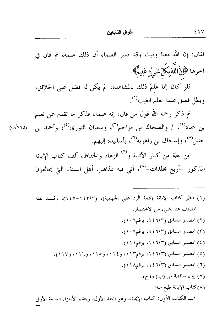 ابن بطة من كبار الأئمة و7 الزهاد والحفاظ، ألف كتاب الإبانة المذكور -أربع مجلدات-8، أتى فيه بمذاهب أهل السنة، التي يخالفون