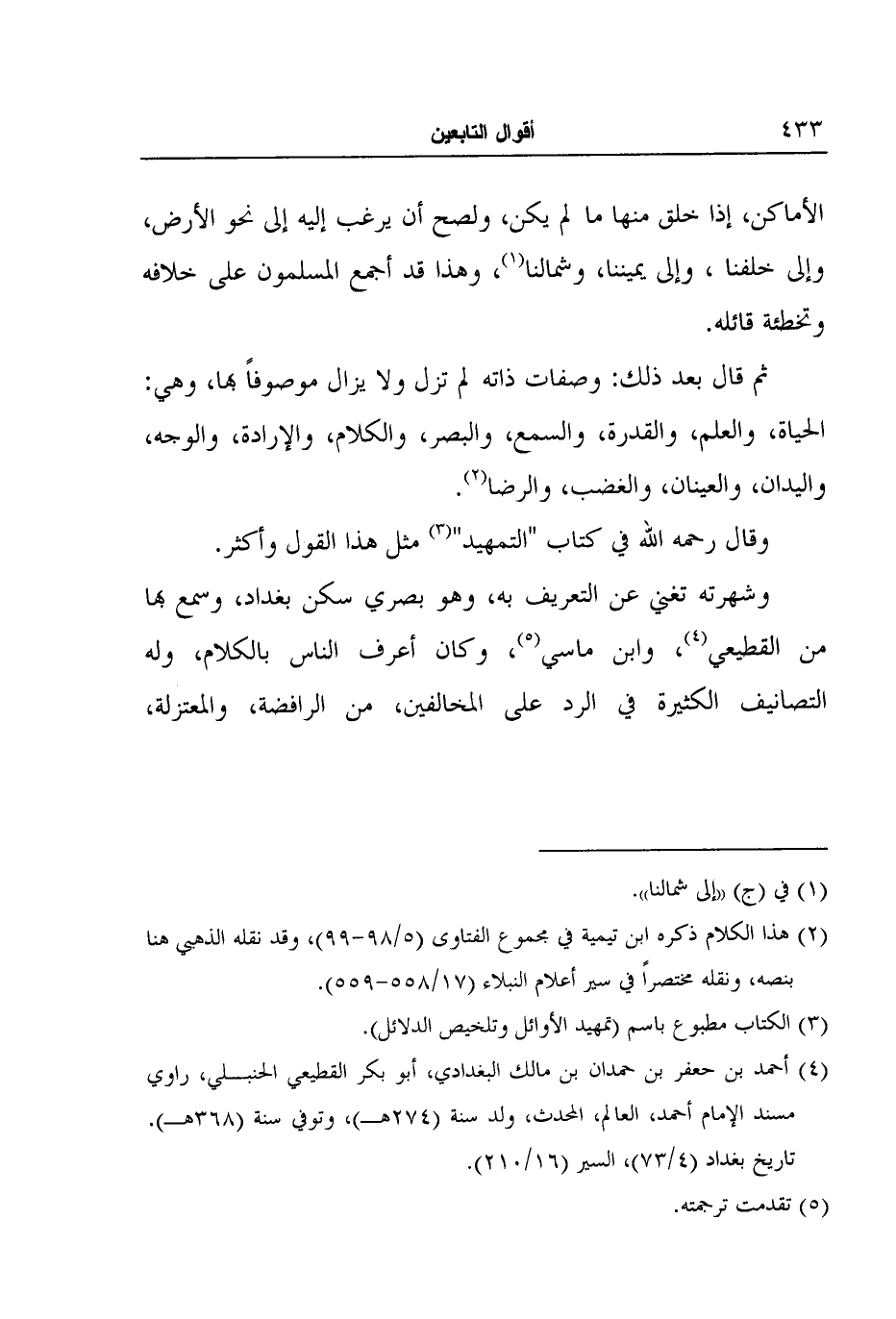 4 أحمد بن حعفر بن حمدان بن مالك البغدادي، أبو بكر القطيعي الحنبلي، راوي مسند الإمام أحمد، العالم، المحدث، ولد سنة (274هـ) ، وتوفي سنة (368هـ) . تاريخ بغداد (4/73) ، السير (16/210) .