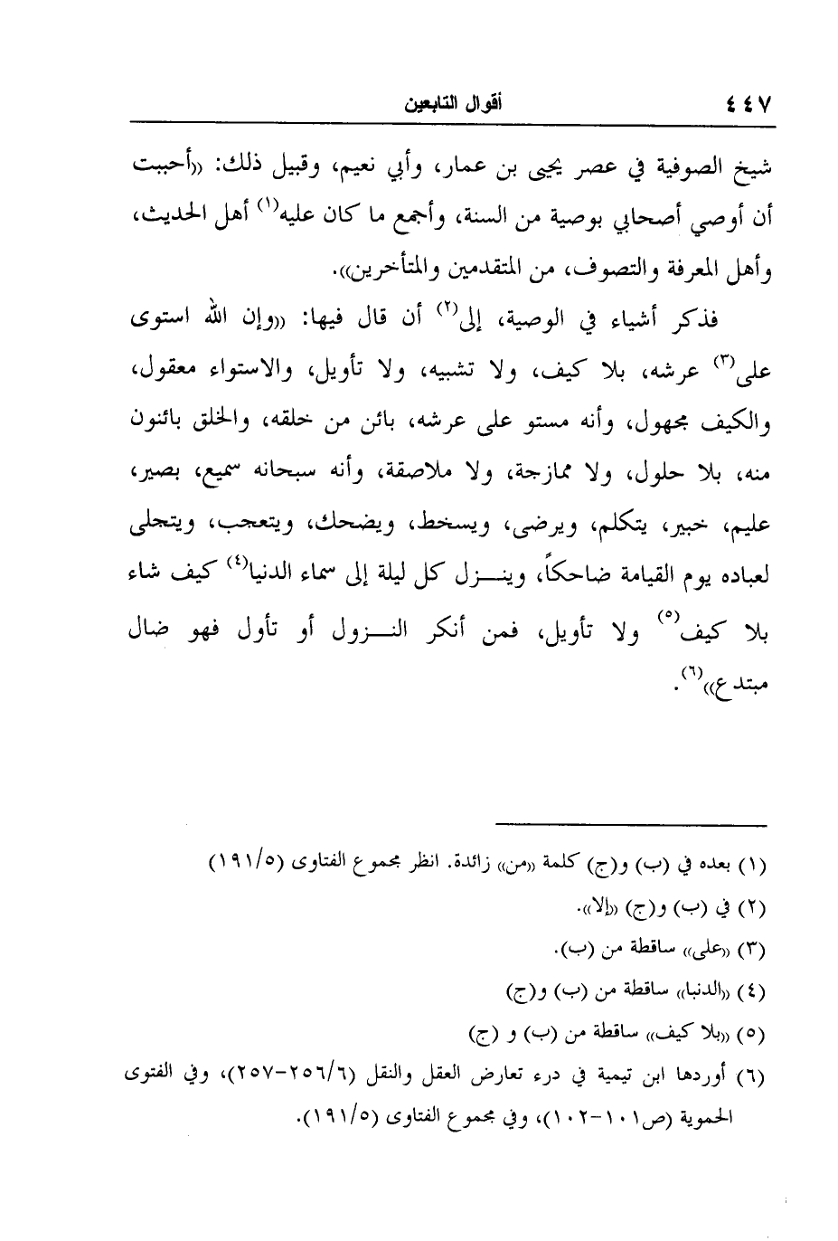 6 أوردها ابن تيمية في درء تعارض العقل والنقل (6/256-257) ، وفي الفتوى الحموية (ص101-102) ، وفي مجموع الفتاوى (5/191) .