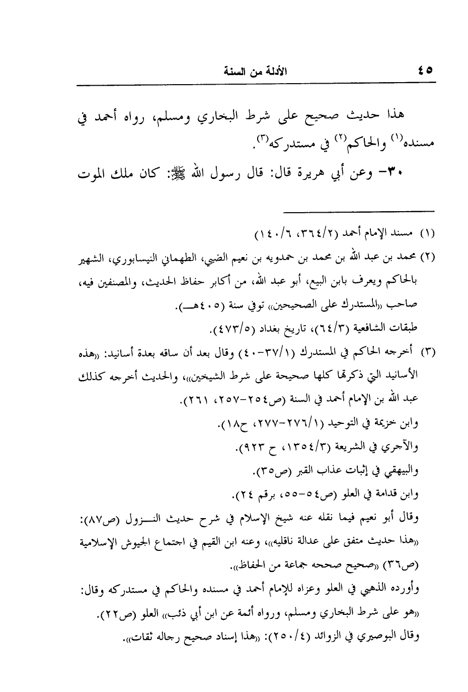 3 أخرجه الحاكم في المستدرك (1/37-40) وقال بعد أن ساقه بعدة أسانيد: "هذه الأسانيد التي ذكرتها كلها صحيحة على شرط الشيخين"، والحديث أخرجه كذلك عبد الله بن الإمام أحمد في السنة (ص254-257، 261) .وابن خزيمة في التوحيد (1/276-277، ح18) .والآجري في الشريعة (3/1354، ح 923) .والبيهقي في إثبات عذاب القبر (ص35) .وابن قدامة في العلو (ص54-55، برقم 24) .وقال أبو نعيم فيما نقله عنه شيخ الإسلام في شرح حديث النزول (ص87) : "هذا حديث متفق على عدالة ناقليه"، وعنه ابن القيم في اجتماع الجيوش الإسلامية (ص36) "صحيح صححه جماعة من الحفاظ".وأورده الذهبي في العلو وعزاه للإمام أحمد في مسنده والحاكم في مستدركه وقال: "هو على شرط البخاري ومسلم، ورواه أئمة عن ابن أبي ذئب" العلو (ص22) .وقال البوصيري في الزوائد (4/250) : "هذا إسناد صحيح رجاله ثقات".