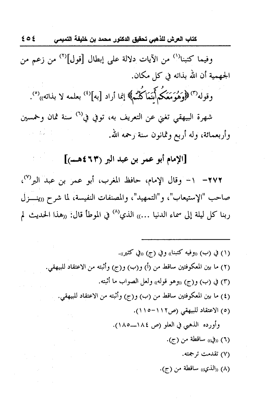 272- 1- وقال الإمام، حافظ المغرب، أبو عمر بن عبد البر7، صاحب "الإستيعاب"، و"التمهيد"، والمصنفات النفيسة، لما شرح "ينزل ربنا كل ليلة إلى سماء الدنيا ... " الذي8 في الموطأ قال: "هذا الحديث لم
