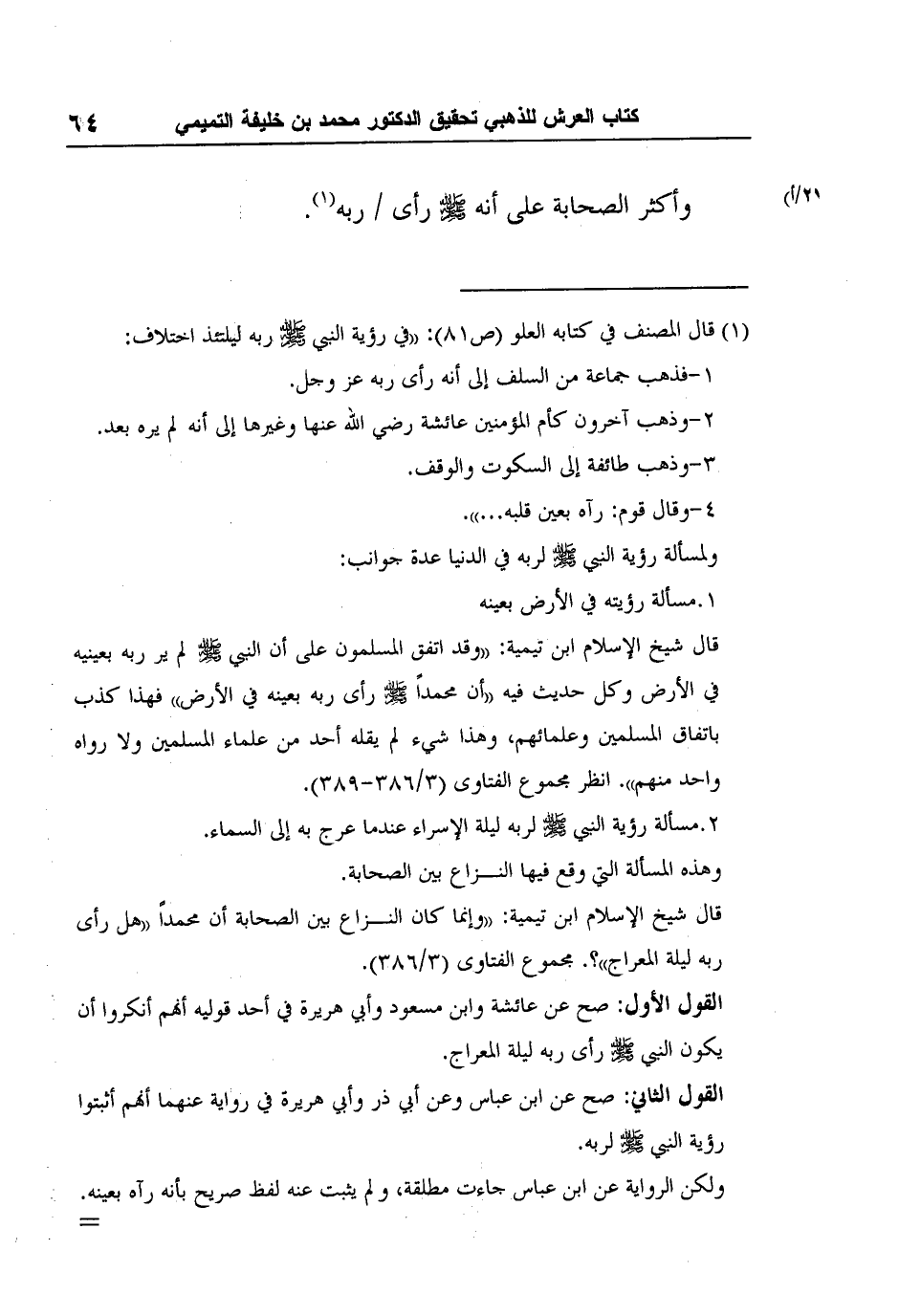 1 قال المصنف في كتابه العلو (ص81) : "في رؤية النبي صلى الله عليه وسلم ربه ليلتئذ اختلاف: