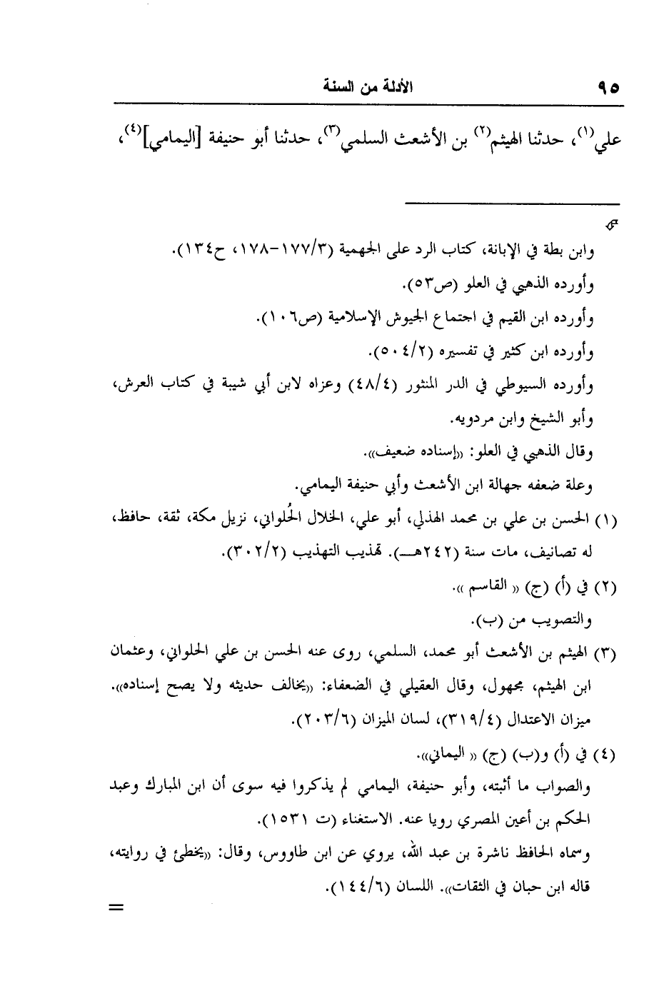 علي1، حدثنا الهيثم2 بن الأشعث السلمي3، حدثنا أبو حنيفة [اليمامي] 4،