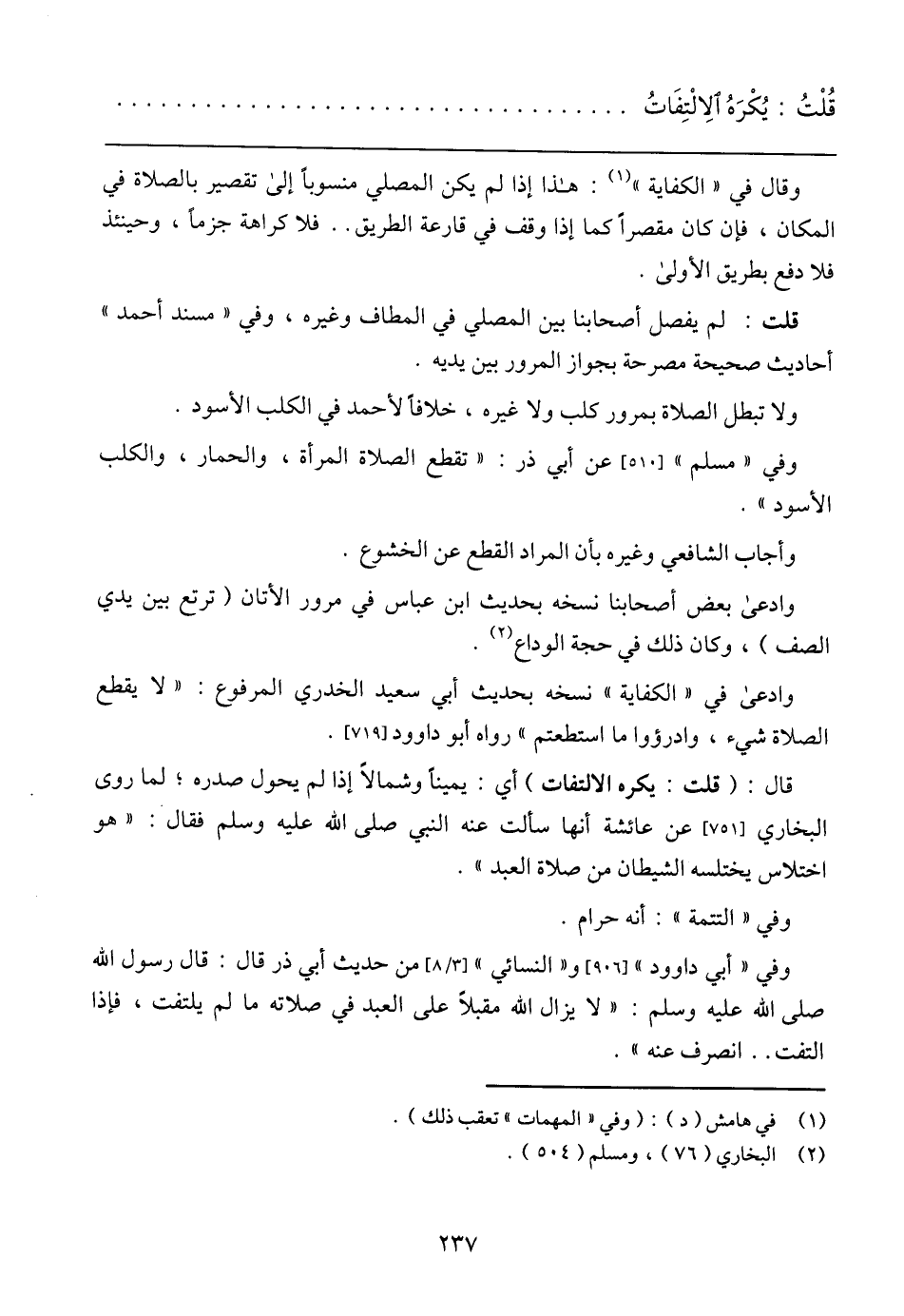 قُلْتُ: يُكْرَهُ الاِلْتِفَاتُ