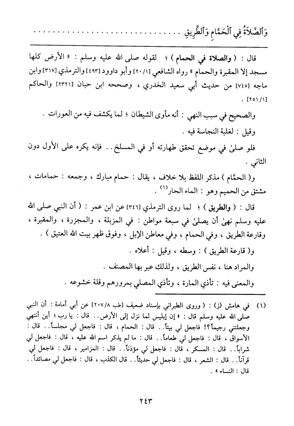 وَالصَّلاَةُ فِي الْحَمَّامِ وَالطَّرِيقِ