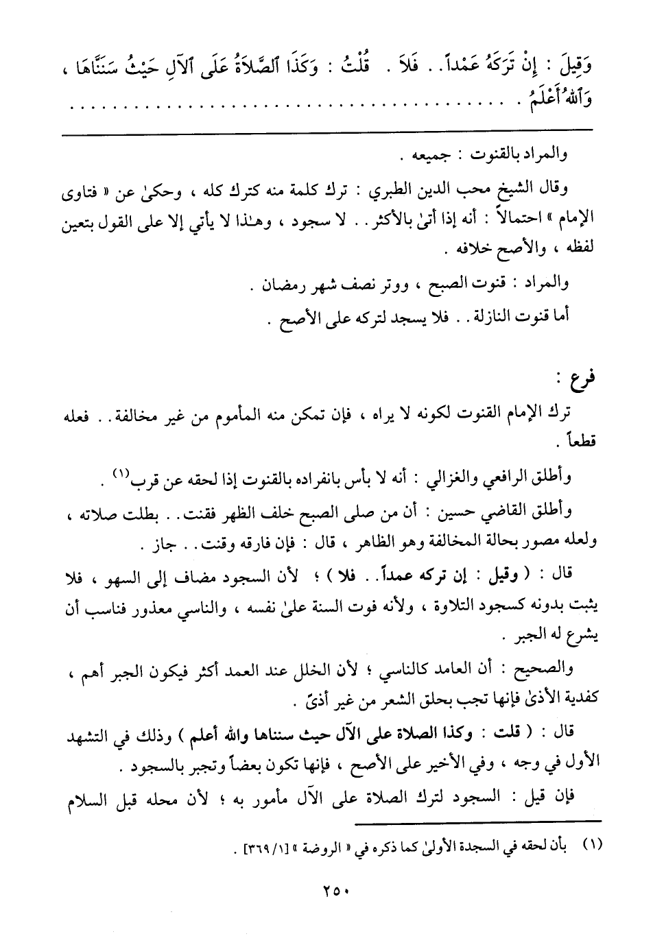 قال: (وقيل: إن تركه عمدًا .. فلا)؛ لأن السجود مضاف إليه السهو، فلا يثبت بدونه كسجود التلاوة، ولأنه فوت السنة على نفسه، والناسي معذور فناسب أن يشرع له الجبر.