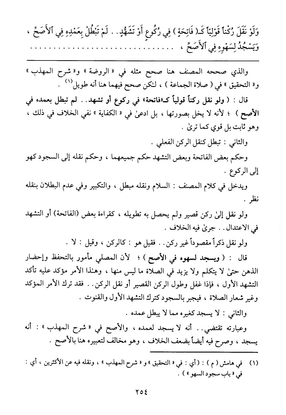 قال: (ويسجد لسهوه في الأصح)؛ لأن المصلي مأمور بالتحفظ وإحضار الذهن حتى لا يتكلم ولا يزيد في الصلاة ما ليس منها، وهذا الأمر مؤكد عليه تأكد التشهد الأول، فإن غفل وطول الركن القصير أو نقل الركن .. فقد ترك الأمر المؤكد وغير شعار الصلاة، فيجبر بالسجود كترك التشهد الأول والقنوت.