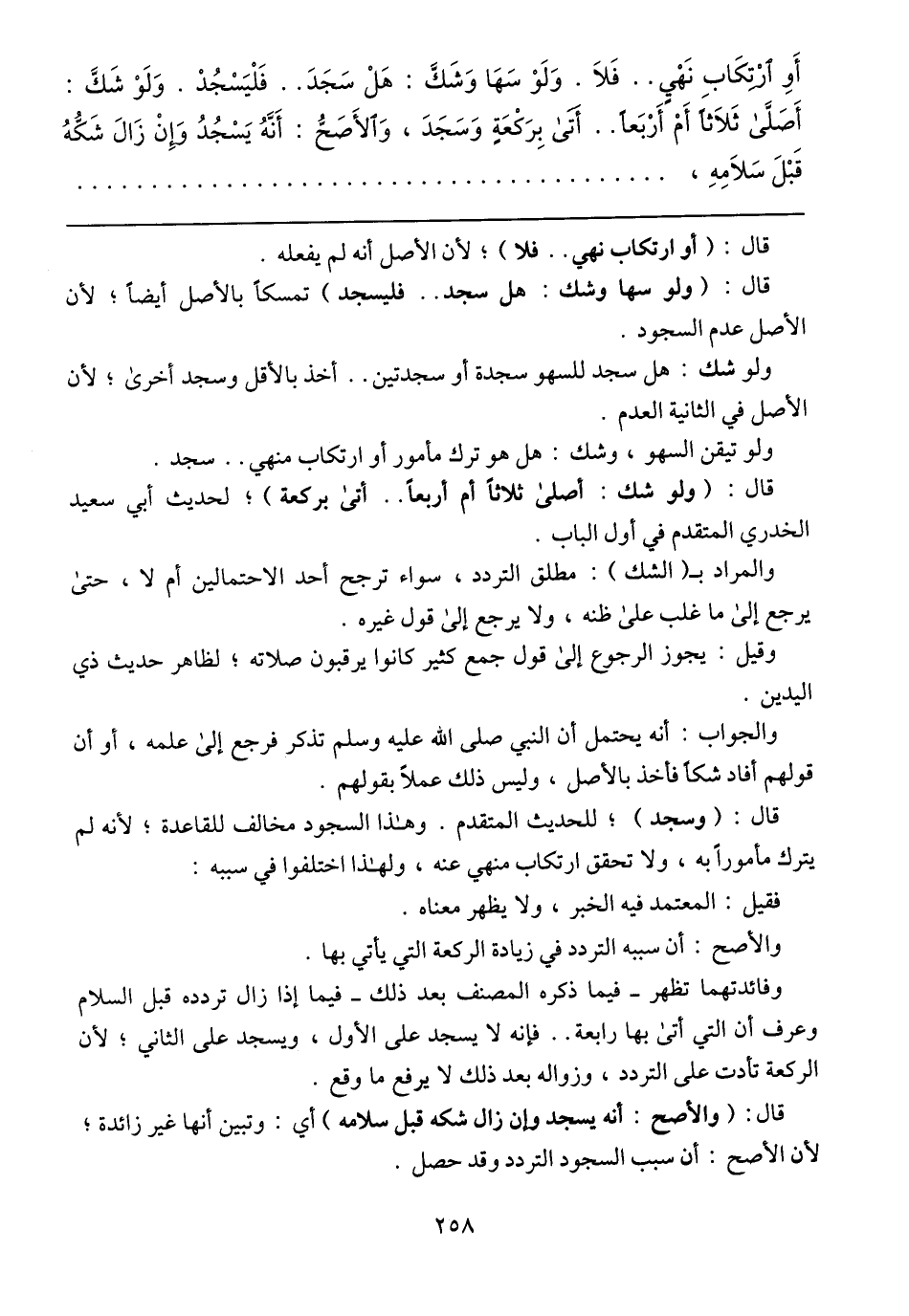 أَوِ ارْتِكَابِ نَهْيٍ .. فَلاَ. وَلَوْ سَهَا وَشَكَّ: هَلْ سَجَدَ .. فَلْيَسْجُدْ. وَلَوْ شَكَّ: أَصَلَّى ثَلاَثًا أَمْ أَرْبَعًا .. أَتَى بِرَكْعَةٍ وَسَجَدَ، وَالأَصَحُّ: أَنَّهُ يَسْجُدُ وَإِنْ زَالَ شَكُّهُ قَبْلَ سَلاَمِهِ،