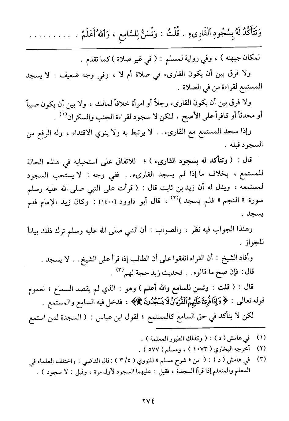 وأفاد الشيخ: أن القراءة اتفقوا على أن الطالب إذا قرأ على الشيخ .. لا يسجد.